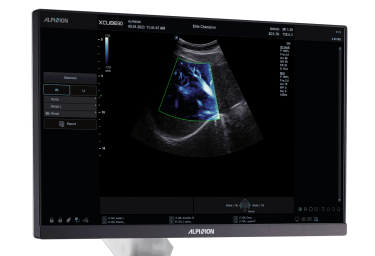 Mit dem X-CUBE 90 beginnt ALPINION eine neue Generation an Farbdopplersystemen, die X-CUBE Serie. Mit Bildverarbeitungstechnologien eines Premiumsystems und neuen Breitband-Schallköpfen mit X+ Crystal Signature™ Technologie wartet das neue X-CUBE 90 auf.